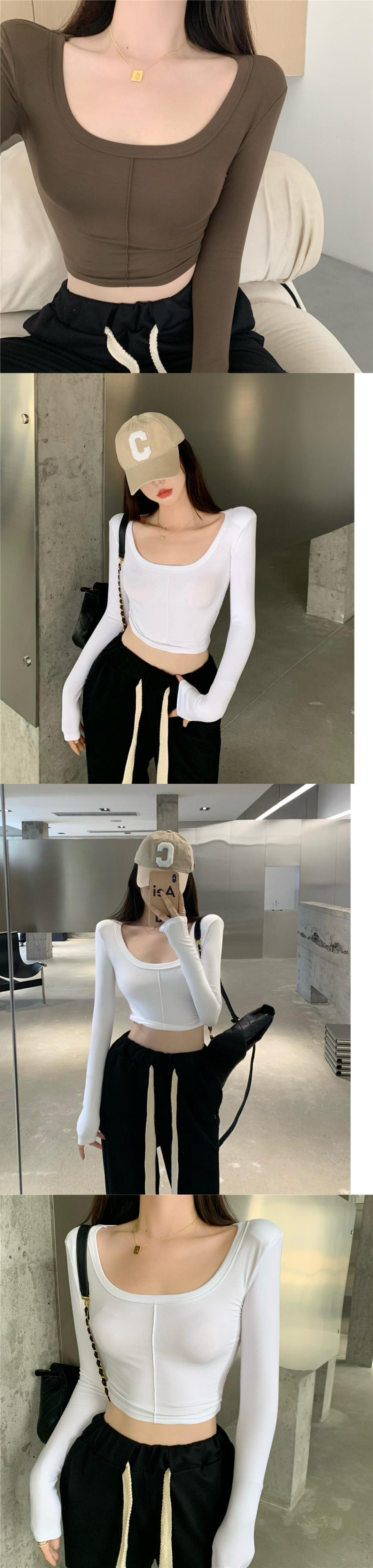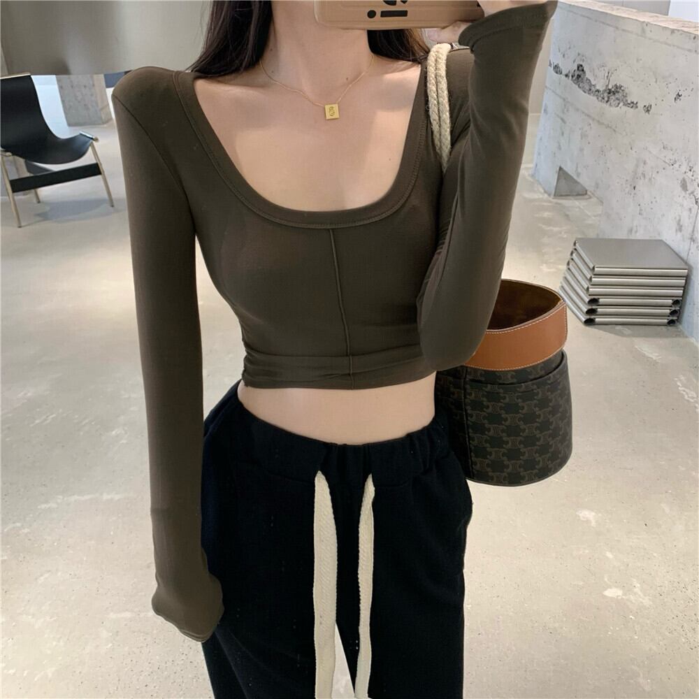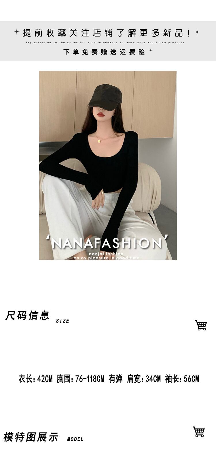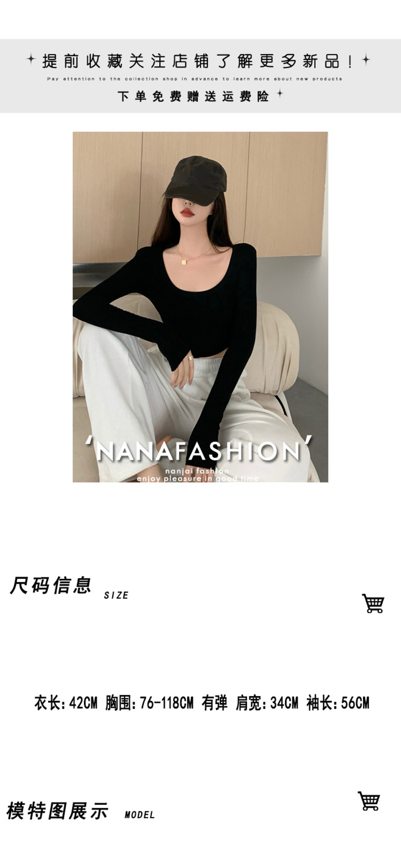 Slim fit pure desire French short long-sleeved top early autumn design niche bottoming shirt with t-shirt women ショート ロング オータム 秋物 Tシャツ ピュア nana84604427133 | modepoisson