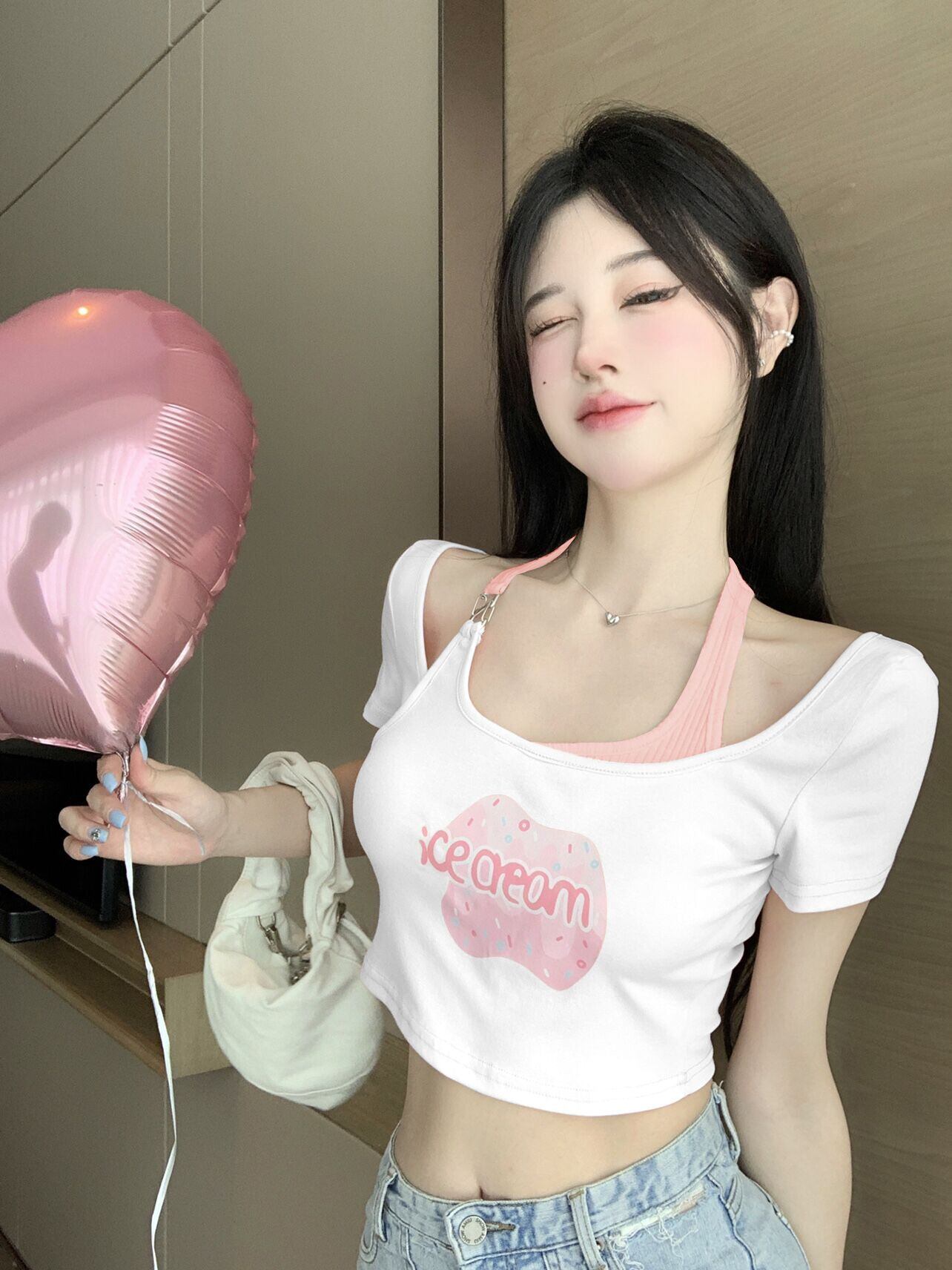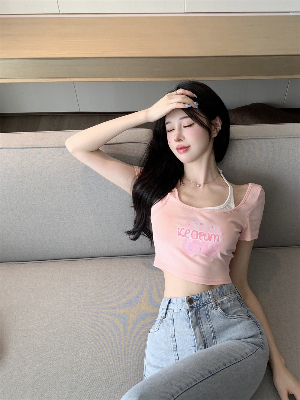 Hot short-sleeved t-shirt women's 2022 summer new design niche unique unique waist short top ショート サマー 夏物 Tシャツ nana37173878780 | modepoisson