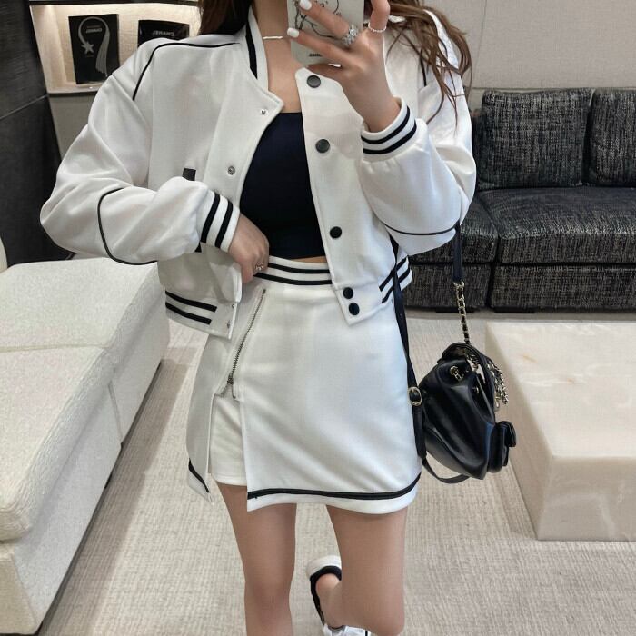 Baseball clothing casual sports suit women's 2022 early autumn new fashion long-sleeved jacket half-length skirt two-piece set ロング カジュアル オータム 秋物 スカート nana14737831317 | modepoisson