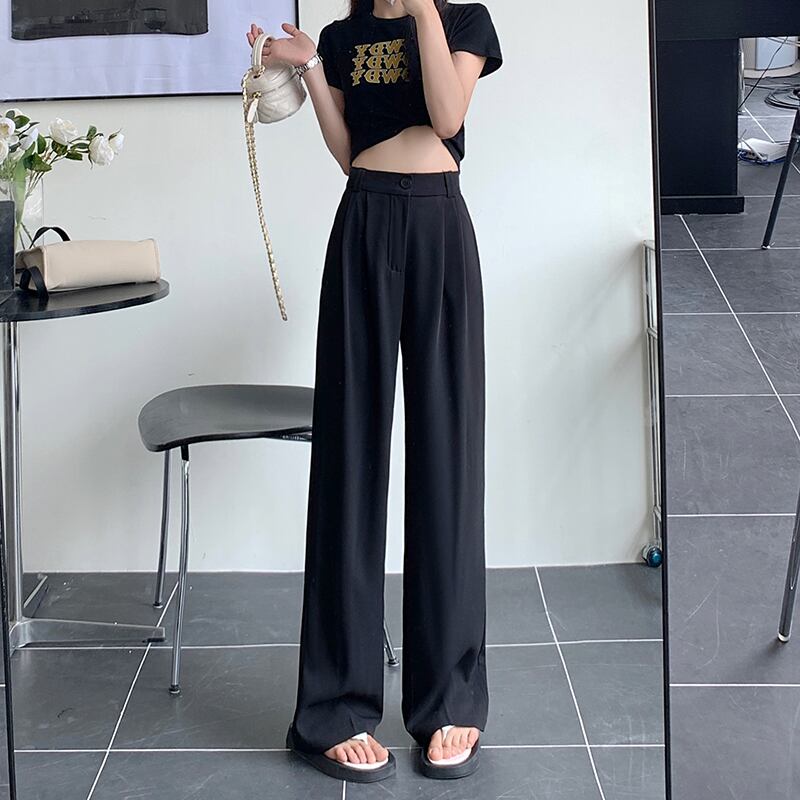 Pants 2022 early autumn new elastic waist suit pants women's high waist drape thin straight wide leg trousers ハイウェスト エラスティック 伸縮 オータム 秋物 ワイドレッグ ワイドパンツ nana41680985562 | modepoisson