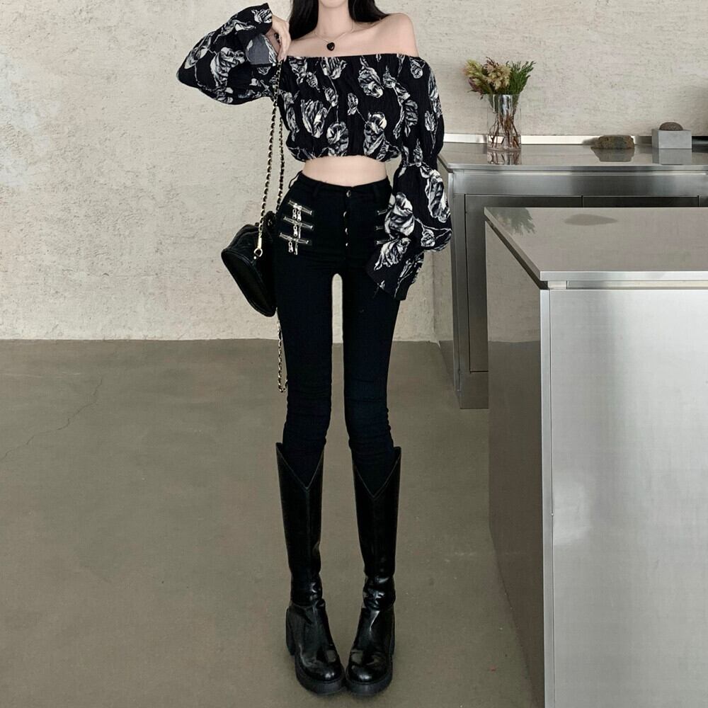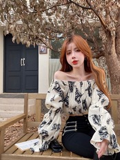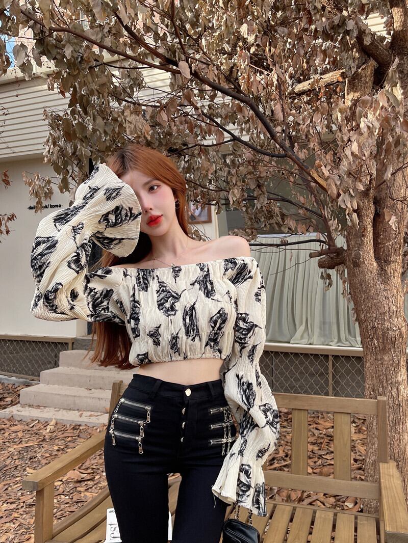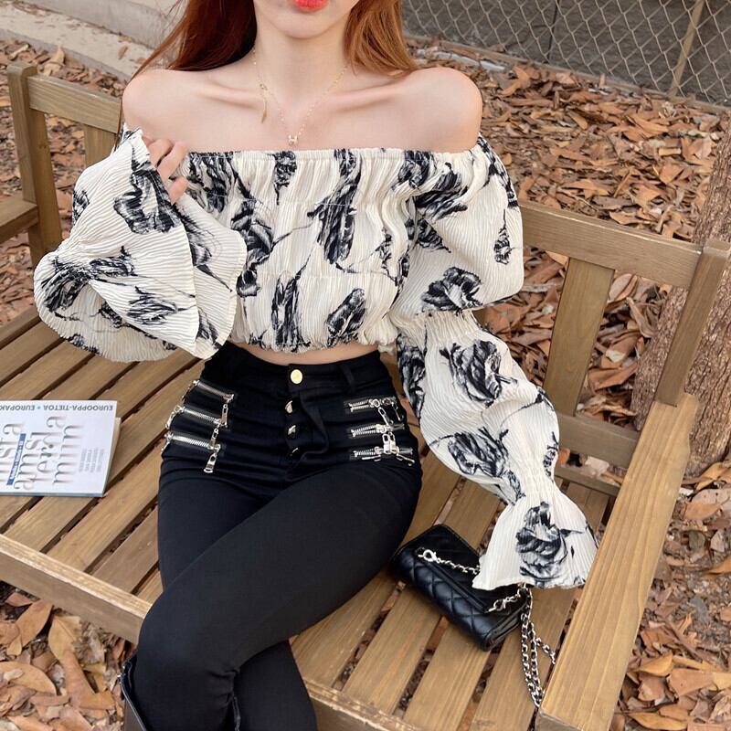 One-shoulder sweet short puff sleeve western style small shirt small autumn chic shirt long sleeve top ladies ショート ロング 長袖 大人ガーリー スウィート キュート カジュアル オータム 秋物 nana39938024012 | modepoisson
