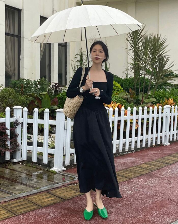 French temperament square collar Hepburn style waist black long skirt women's clothing 2022 autumn new long-sleeved dress ロング ブラック オータム 秋物 スカート スクウェア nana98153846518 | modepoisson