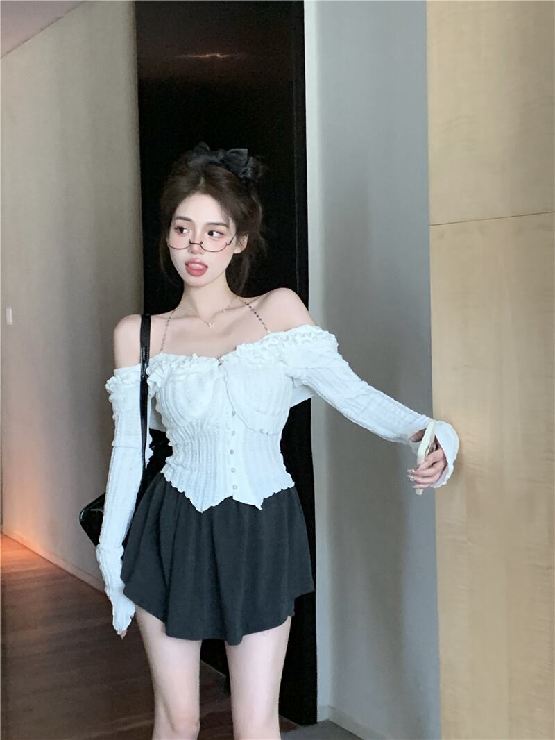 ホワイト ワンショルダー 長袖 シャツ レディース 夏の新作 純情フリル デザインセンス ニッチスリム ショートトップ ロング サマー 夏物 ピュア nana84446180064 | modepoisson