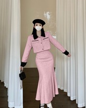 小さな香りのスーツ 2023 春の新しいショートコートハイウエストフィッシュテールバッグヒップスカートファッションツーピース女性 ハイウェスト スプリング 春物 nana36249983675 | modepoisson