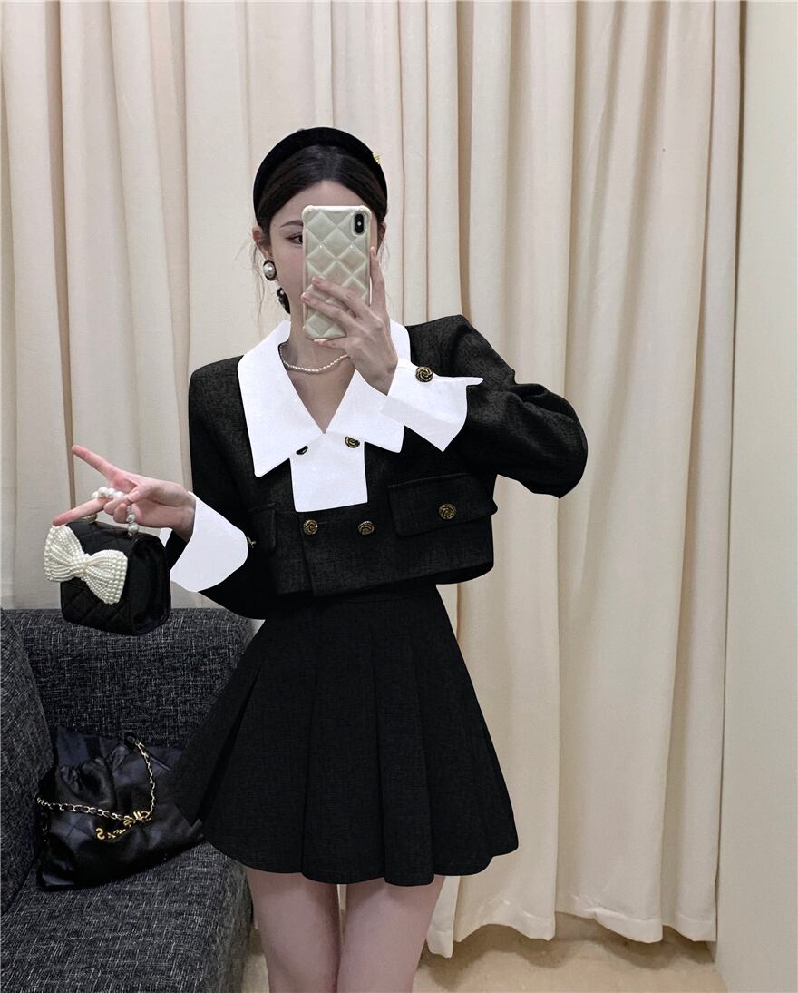 Xiaoxiang スタイルの気質の女神ファン爆発的なツーピース スーツ 2023 春の新しい秋のコート プリーツ スカート スプリング 春物 オータム 秋物 nana11796910808 | modepoisson