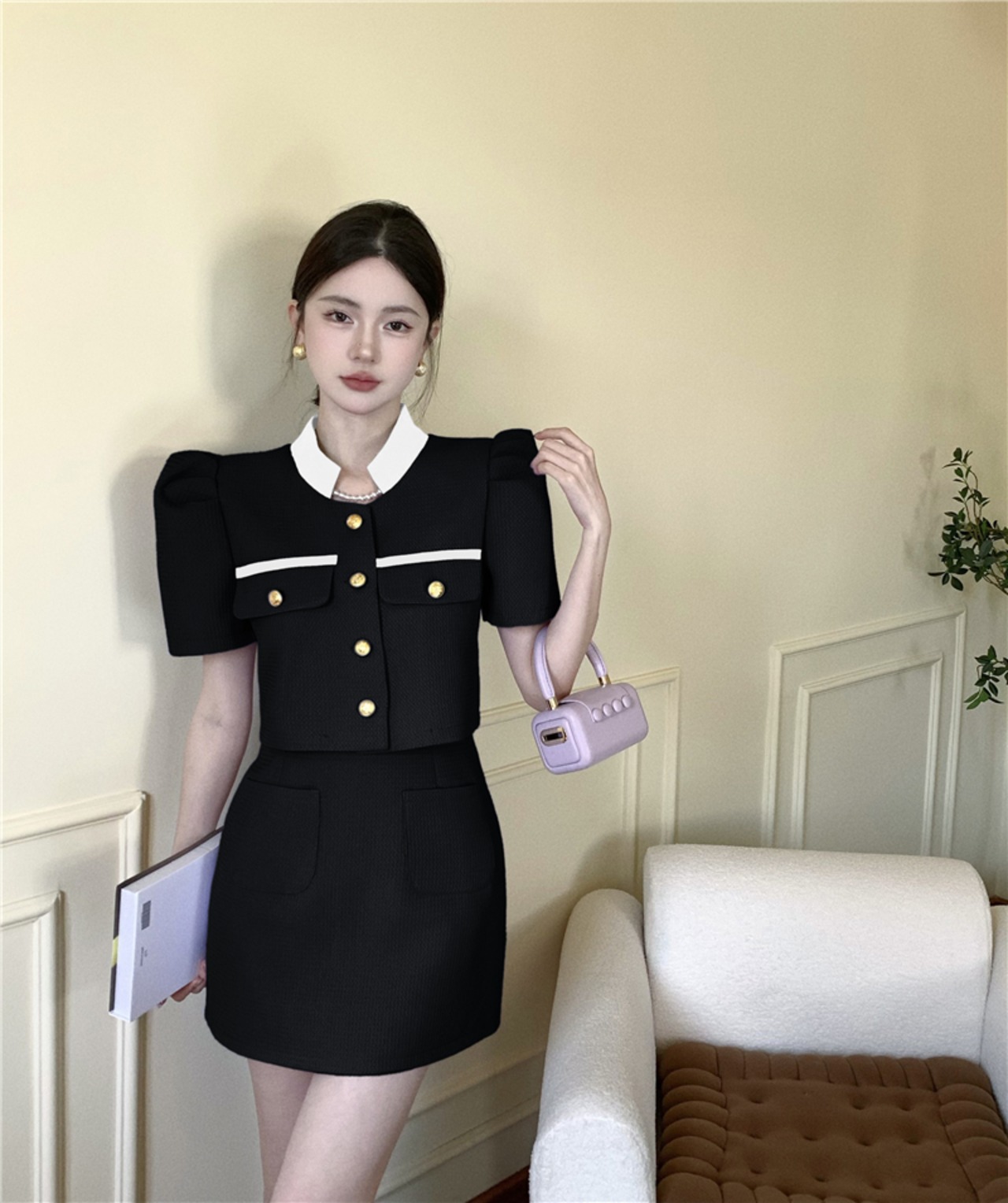 小さな香りのスーツの女性 2023 夏の新ファッションハイエンドショートコートトップハイウエストスカート 2 点セット ハイウェスト サマー 夏物 nana81982720803 | modepoisson