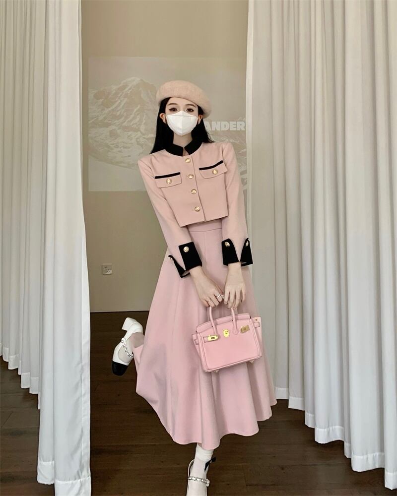 フレンチピンクの小さな香りの春と秋の新しいジャケットのハーフレングスのスカートの有名人の気質ドラマツーピースのスーツの女性 スプリング 春物 オータム 秋物 nana54896464601 | modepoisson