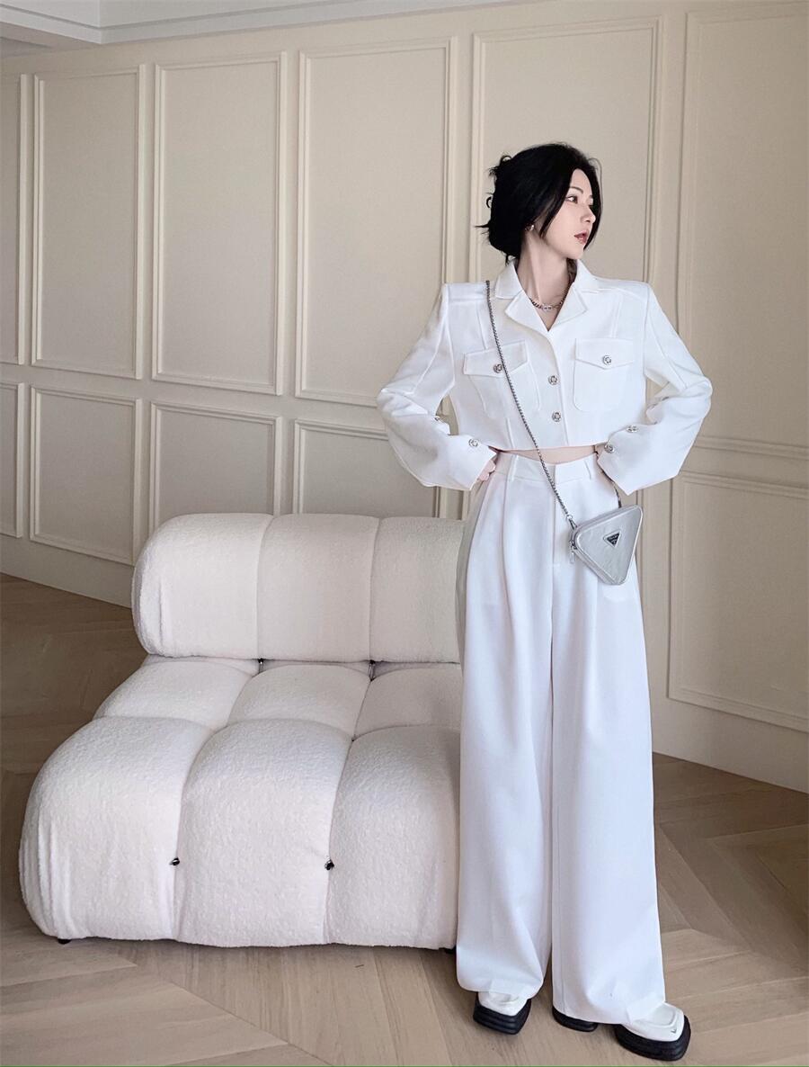 2023 春の新気質ショートスーツジャケットハイウエストワイドレッグカジュアルパンツハイエンドツーピーススーツ女性 ハイウェスト スプリング 春物 ワイドパンツ nana94153258763 | modepoisson