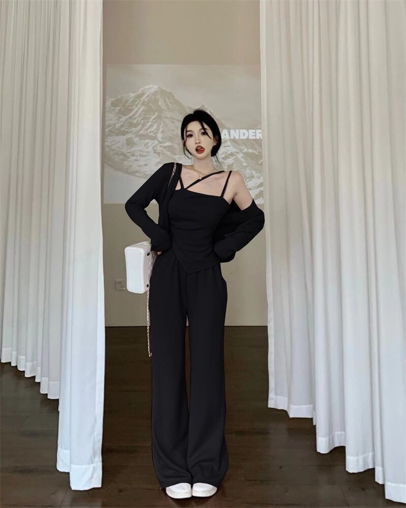 2023 春の新作カーディガンコートサスペンダーワイドレッグパンツネット赤揚げストリートスタイルスリーピーススーツ婦人服 レッド スプリング 春物 nana92603066191 | modepoisson