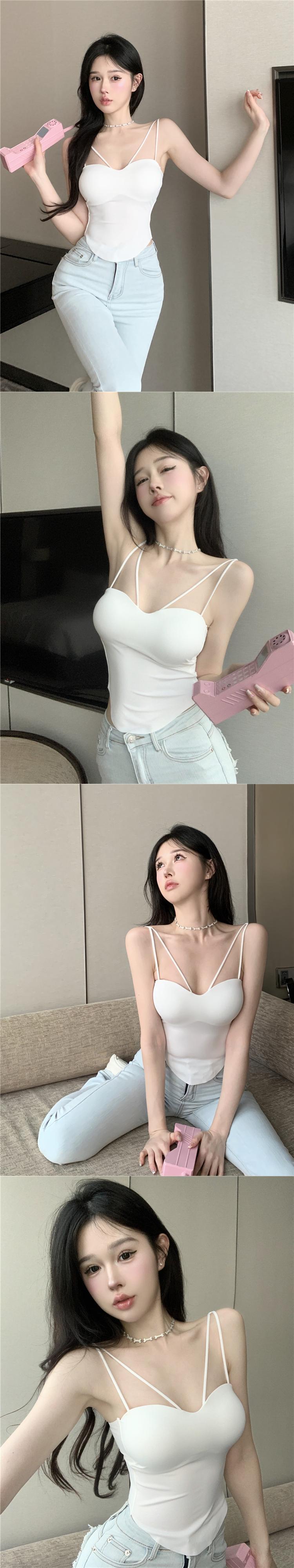 フレンチ甘辛スタイル キャミソール 婦人服 夏の新作 セクシー インナー チェストパッド付き ボトムス シャツ アウター トップス 大人ガーリー スウィート キュート カジュアル サマー 夏物 nana54202592271 | modepoisson