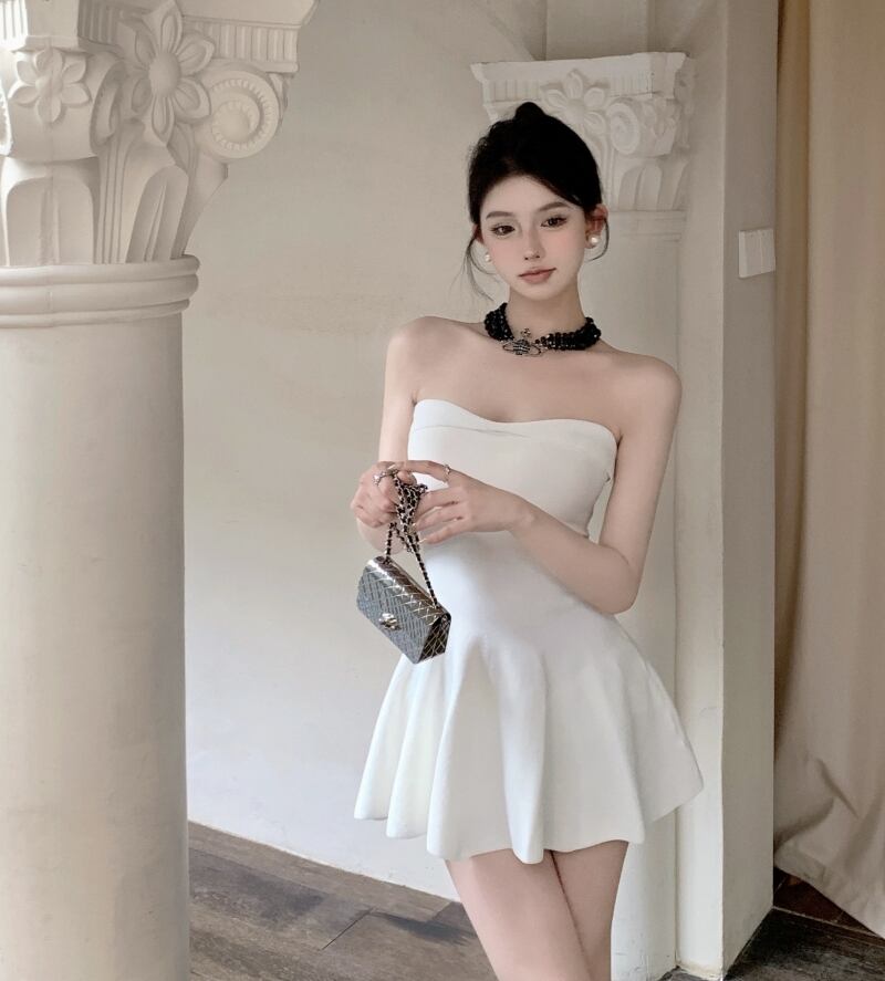 ホット純粋な欲望風有名人気質チューブ トップ ドレス女性の夏の新しい小さなスリム スリム a ライン スカート サマー 夏物 Aライン ピュア nana47701574311 | modepoisson
