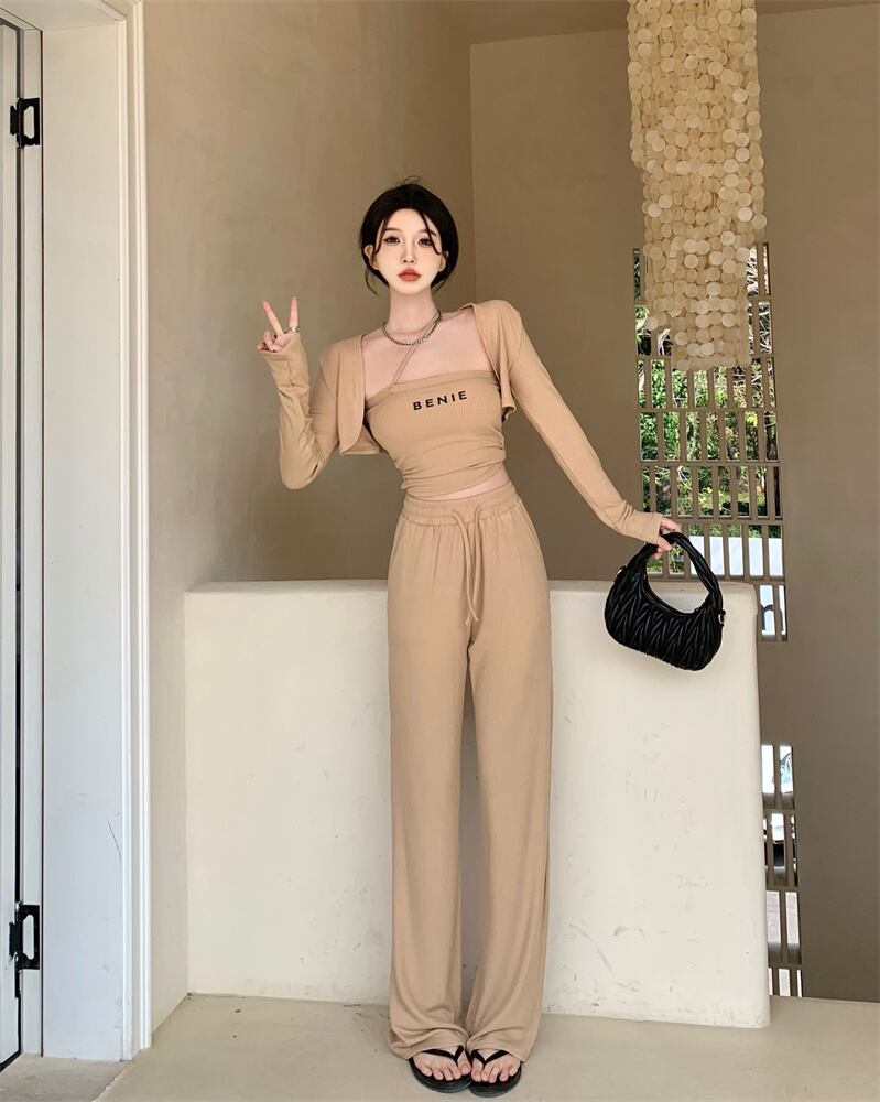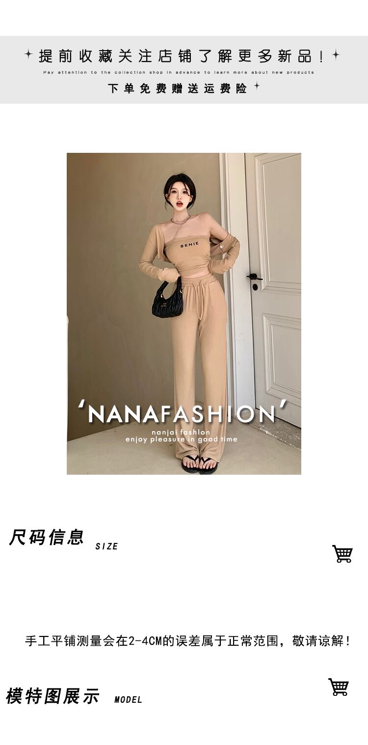 スリーピーススーツ女性春 2023 新しいカーディガントップセクシーなキャミソールハイウエストワイドレッグパンツ ハイウェスト スプリング 春物 ワイドパンツ nana99559965963 | modepoisson