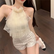 -エンドツーピーススーツ女性 2023 夏の新しいファッションデザインニッチトップハイウエストスパンコールショートパンツ ハイウェスト サマー 夏物 ショーツ ブルマー nana52930000675 | modepoisson