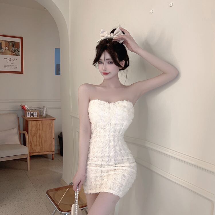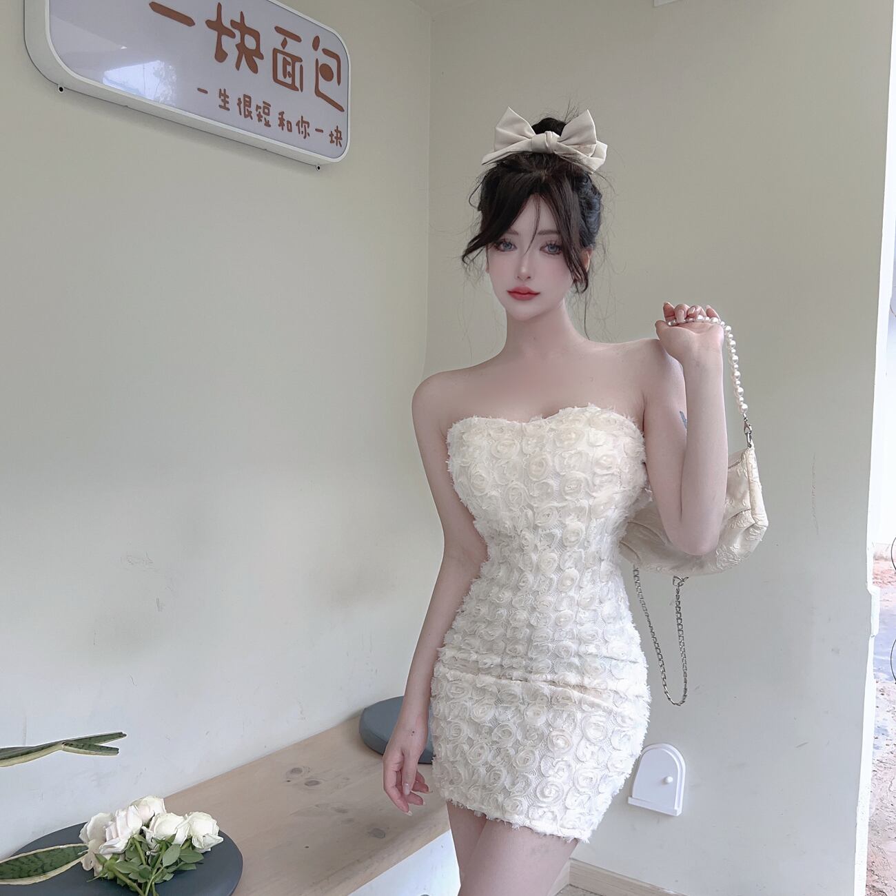 2023 夏新セレブ気質チューブトップ重工業ドレススカート純粋な欲望セクシーなウエスト甘いスパイシードレス女性 大人ガーリー スウィート キュート カジュアル サマー 夏物 ピュア nana84495326137 | modepoisson