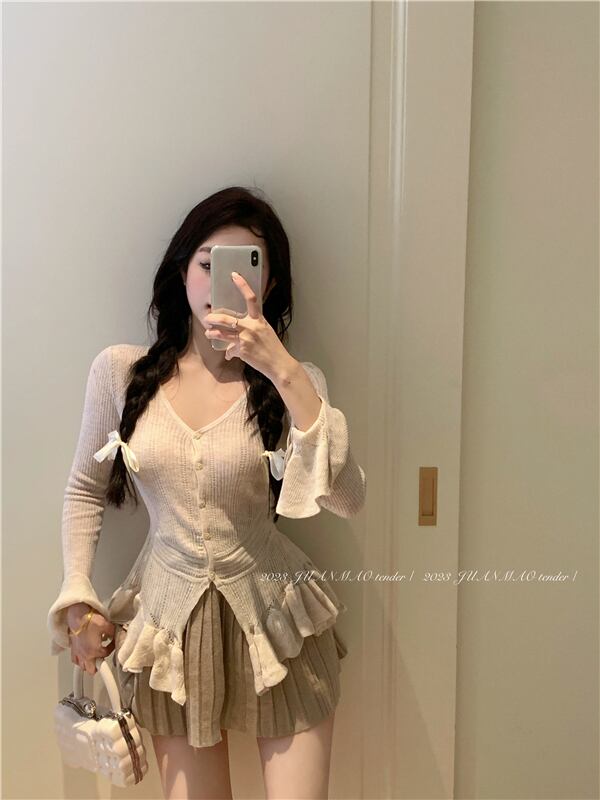 フランスのニッチ V ネック ニット セーター婦人服 2023 夏の新しいスタイルのスリムでユニークなユニークなカーディガン トップ サマー 夏物 Vネック nana51392280146 | modepoisson