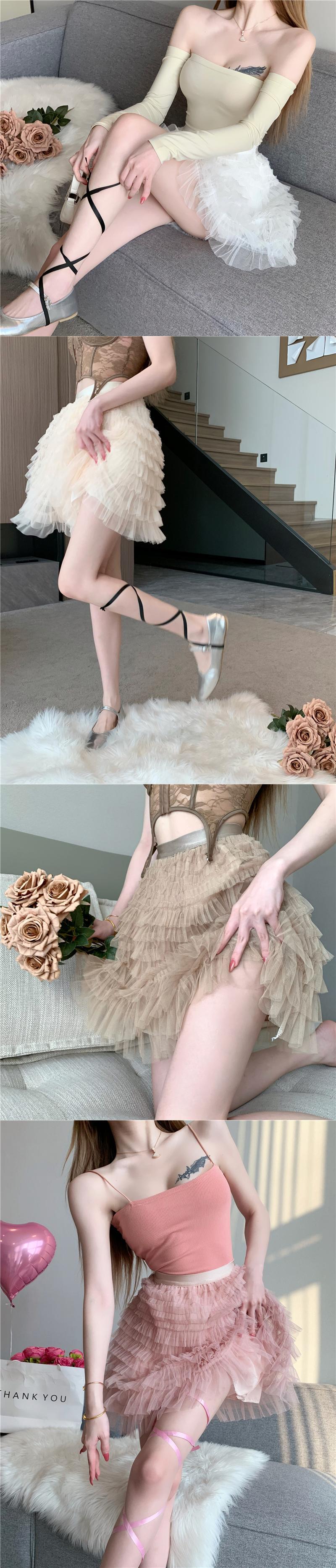 メッシュ スカート 2023 夏の新しいファッション バージョンの小さな背の高いウエストは薄いふわふわケーキ ショート スカートの女性 サマー 夏物 nana95246934050 | modepoisson