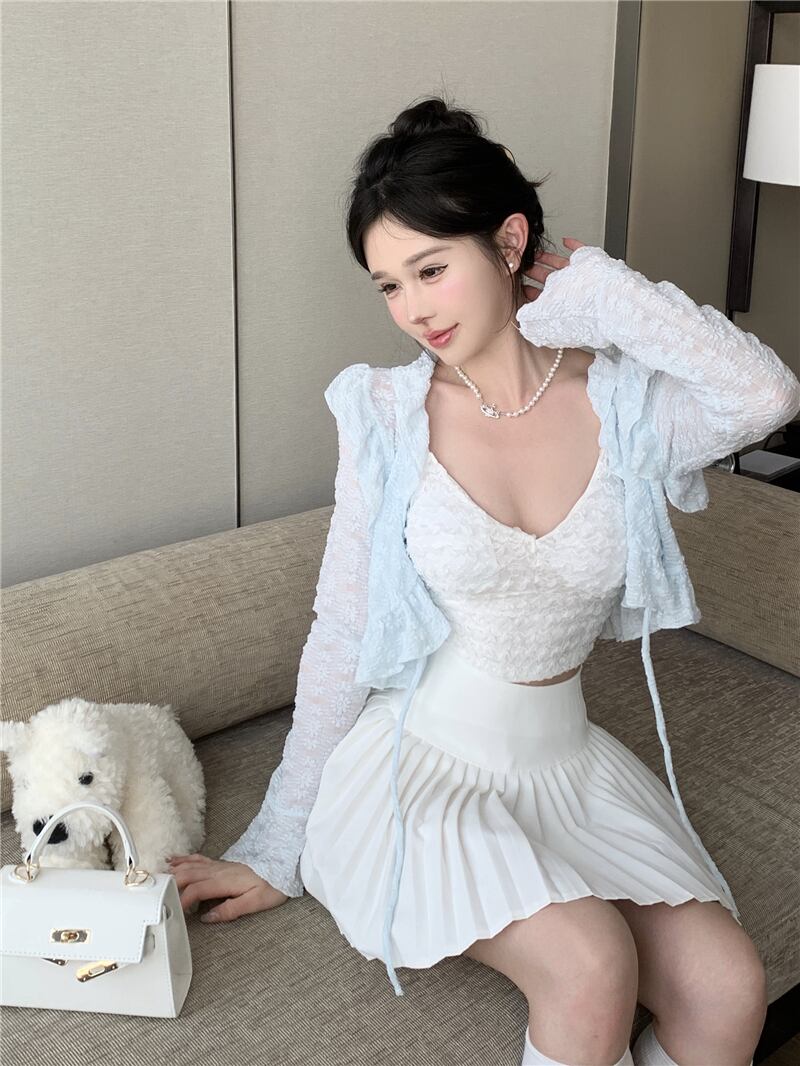 ドラマウェア スリーピース スーツ 女性 夏 新作 キャミソール ハイウエスト スリム プリーツスカート カーディガン レーストップ ハイウェスト サマー 夏物 nana22381360046 | modepoisson