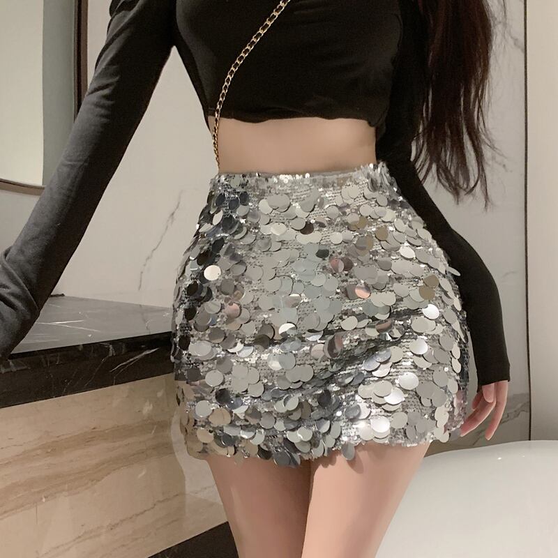 スパイスショートスカートレディースサマー2023新作サマーデザインセンスニッチハイウエストバッグヒップ一言スパンコールスカート ハイウェスト 夏物 nana17126123960 | modepoisson