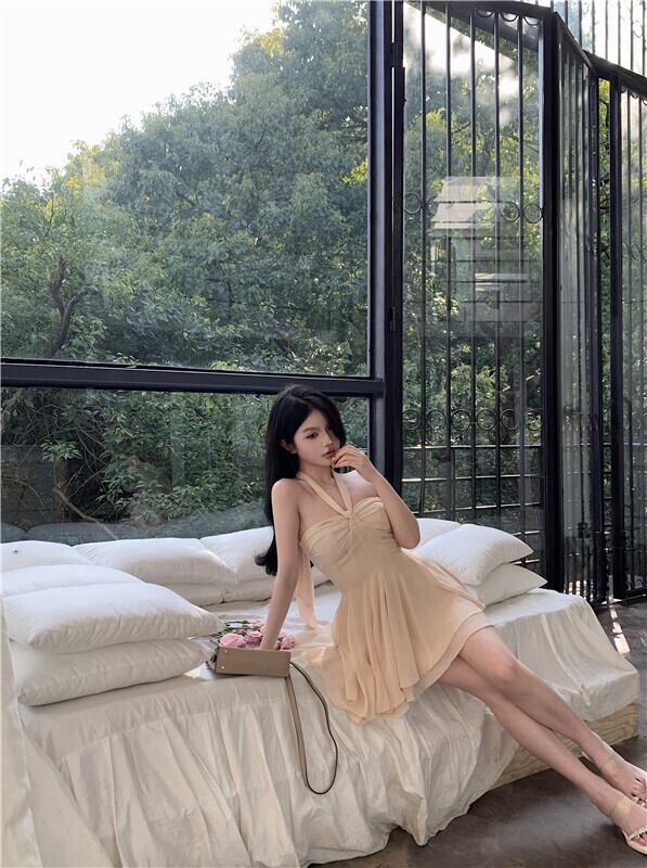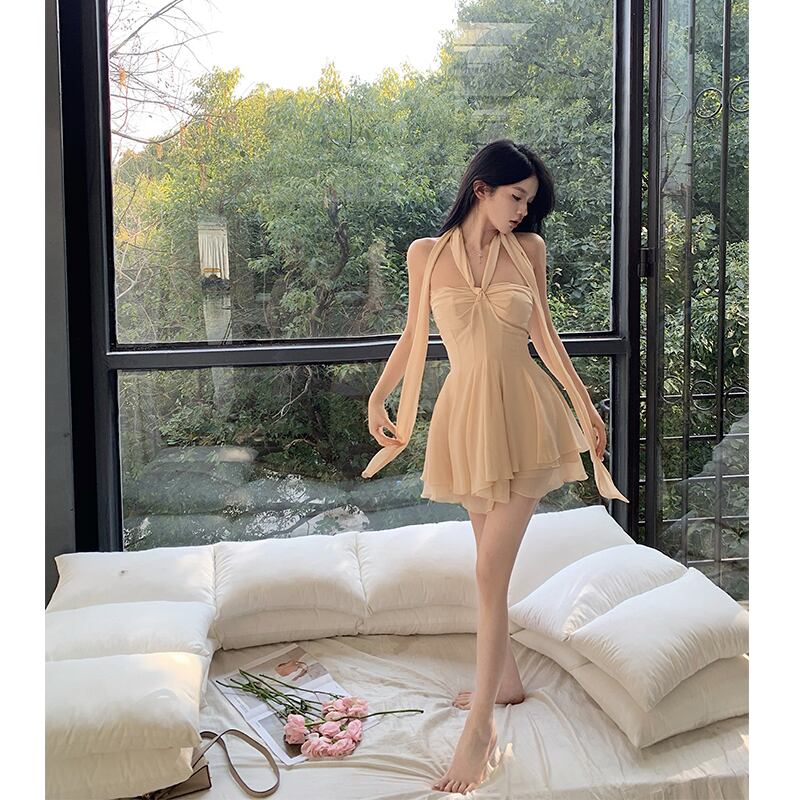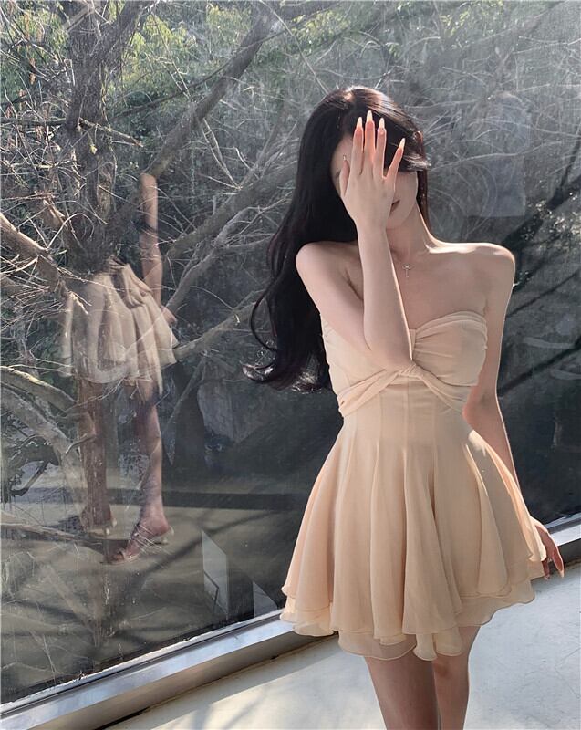 夏の新しいフランスの純粋な欲望風ウエスト a ライン ショート スカート ホルター ネック シックな不規則なドレス婦人服 サマー 夏物 Aライン ピュア nana84414215543 | modepoisson