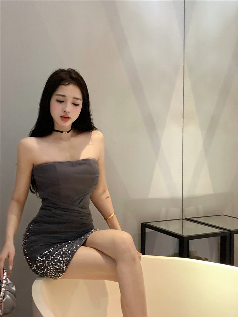2023 夏新純粋な欲望ハイウエスト自己修養スリム気質スプライシングスパンコールチューブトップインナードレス女性 ハイウェスト サマー 夏物 ピュア nana36089050460 | modepoisson