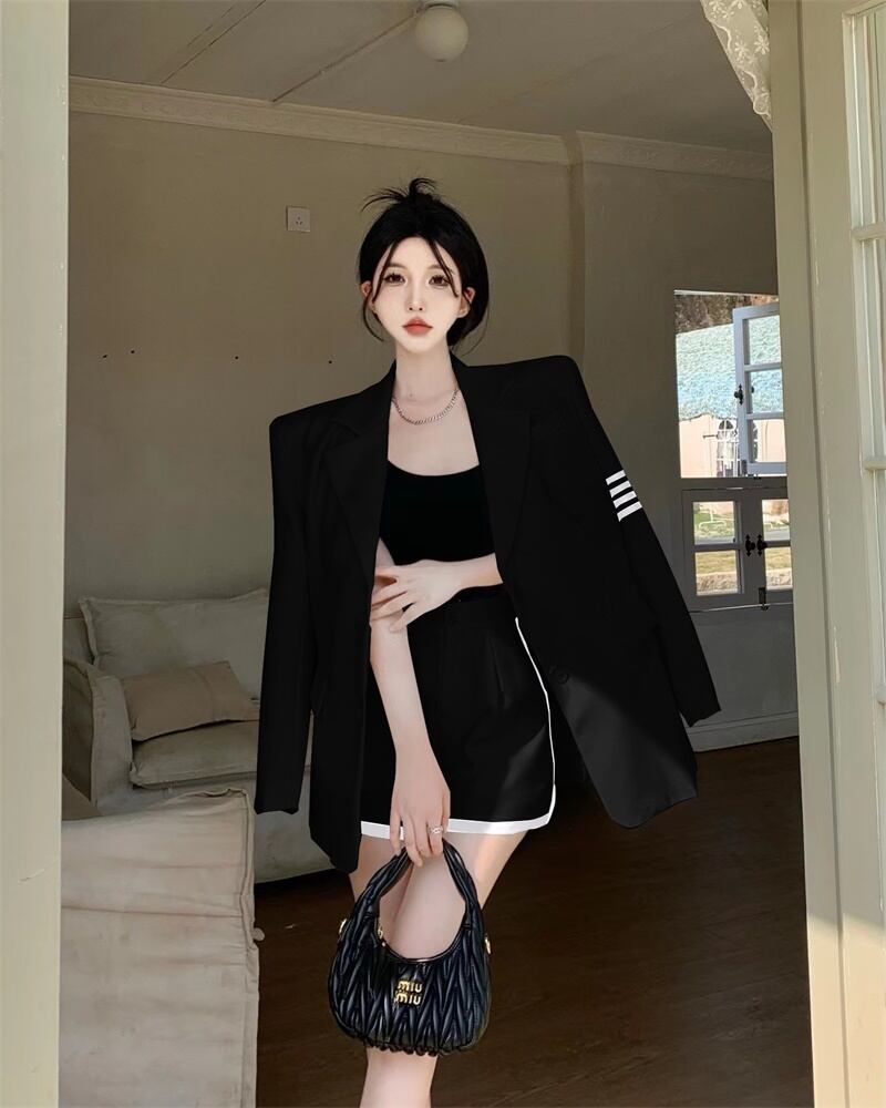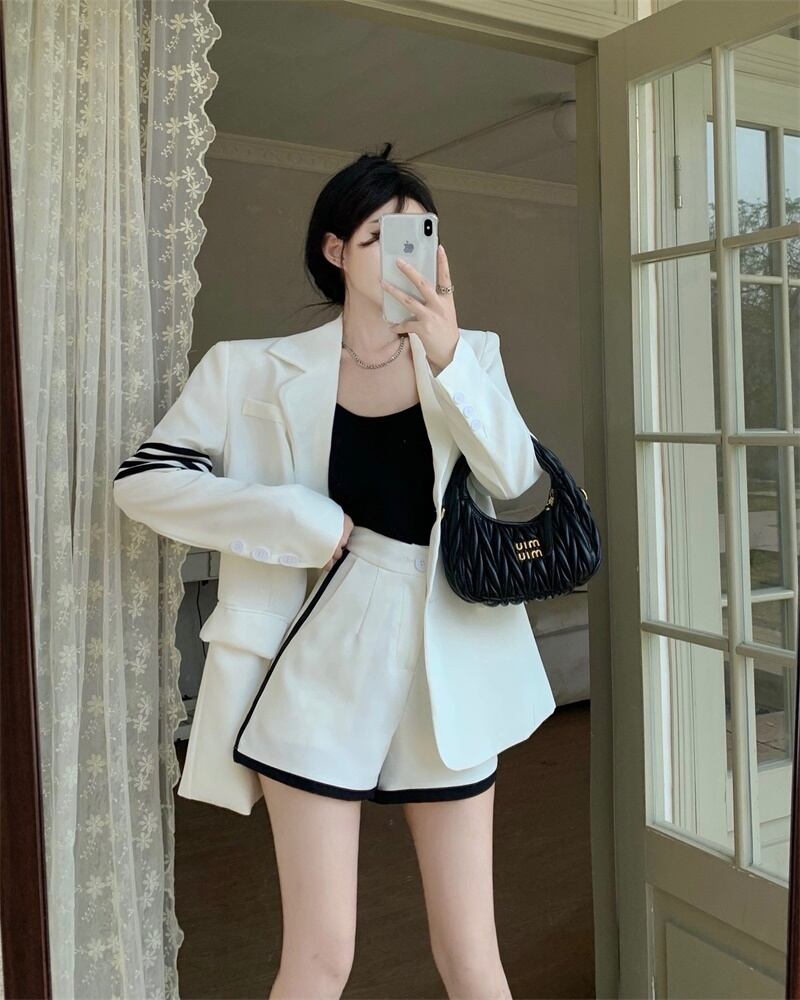 -エンドスーツ春の新ファッションストライプスーツジャケットハイウエストワイドレッグショーツレディースツーピーススーツ ハイウェスト スプリング 春物 ブルマー nana57439265605 | modepoisson