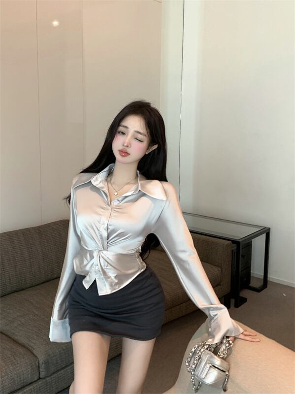 スパイス ウエスト ストラップ ショート シャツ レディース 春先 新作 フレンチならではのデザインセンス ニッチシャツ 着痩せトップス スプリング 春物 nana61771526604 | modepoisson