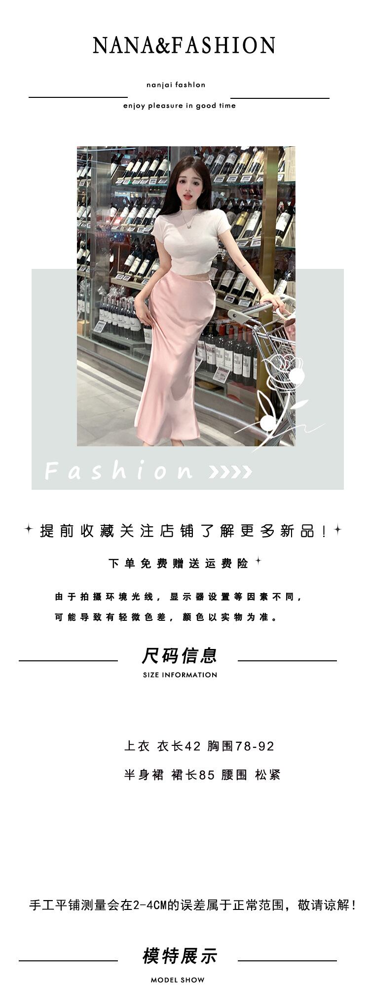 フランスの高品質アセテート ミッドレングス スカート半袖 T シャツ トップ夏の新しいファッション ツーピース スーツ女性 サマー 夏物 Tシャツ nana98920188225 | modepoisson