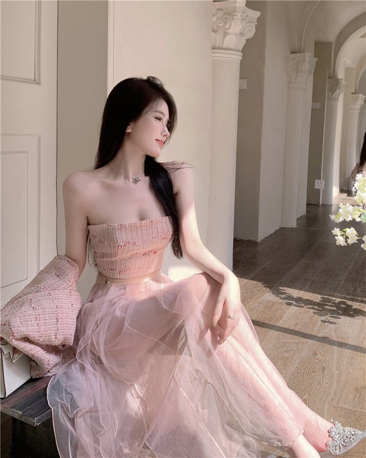 終わりの気質 スーツ 女性 春 ファッション 有名人 小さな香り ショート コート チューブ トップ ベスト ハイウエスト スカート ハイウェスト スプリング 春物 nana12418166246 | modepoisson