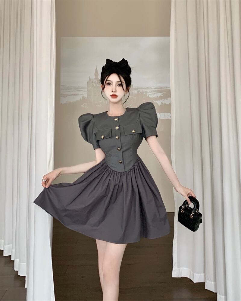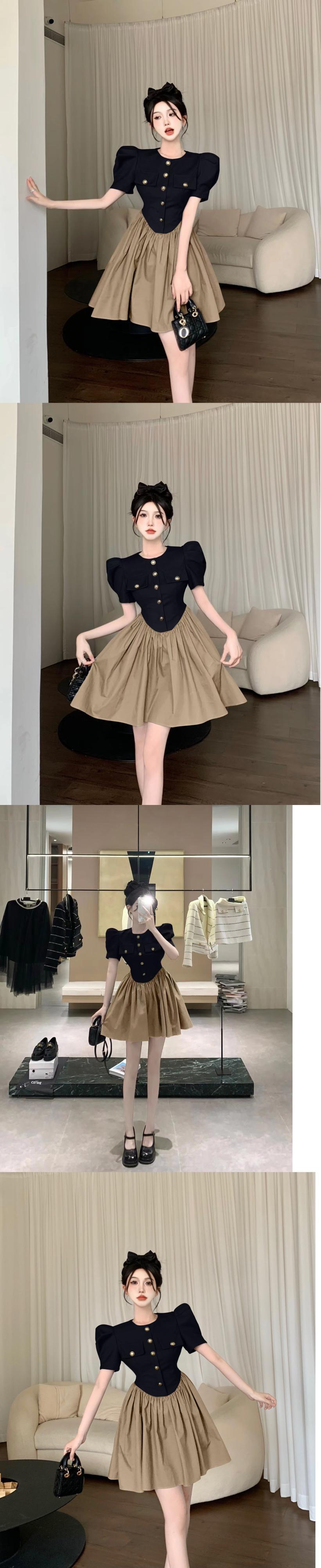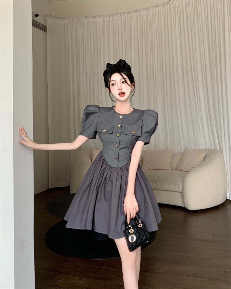 フランスの有名人の気質ドレス 2023 夏の新スタイルのスリムで薄いパフスリーブウエスト a ラインショートスカートの女性 サマー 夏物 Aライン nana20930663979 | modepoisson