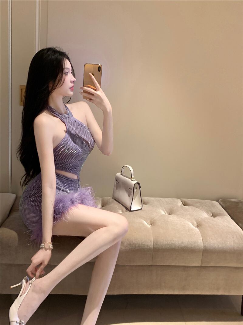 紫のスーツの女性の夏の新しいセクシーな純粋な欲望ぶら下げネックストラップトップハイウエスト薄いスカート 2 点セット ハイウェスト サマー 夏物 ピュア パープル nana95823211127 | modepoisson