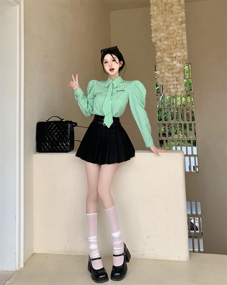 色:黒のスカートベルト2本,緑のシャツ,ピンクのシャツ