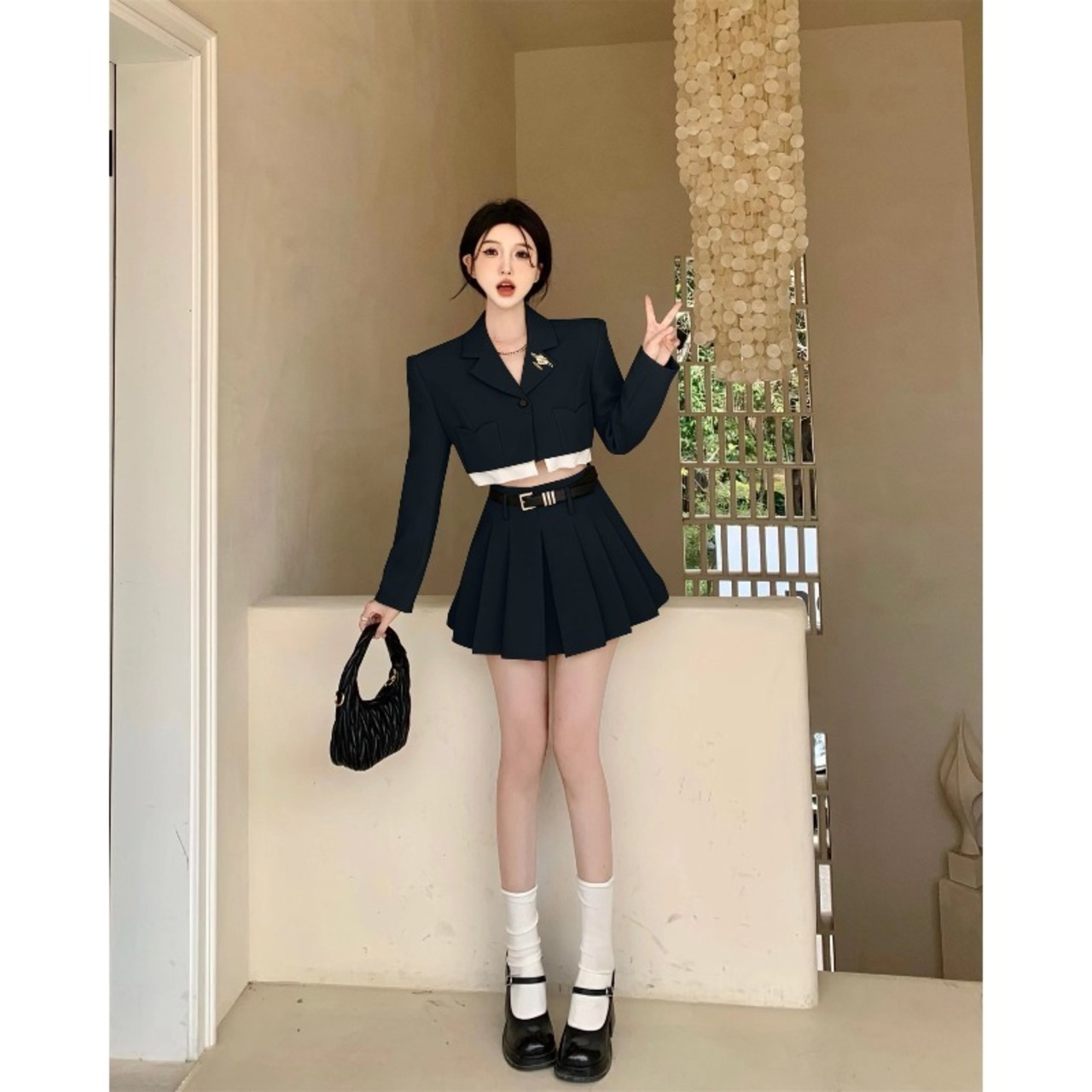 ショート スーツ ジャケット ハイウエスト プリーツ スカート ソルト スタイル フライド ストリート ツーピース スーツ 2023 夏 新作 婦人服 ハイウェスト サマー 夏物 nana35350205930 | modepoisson