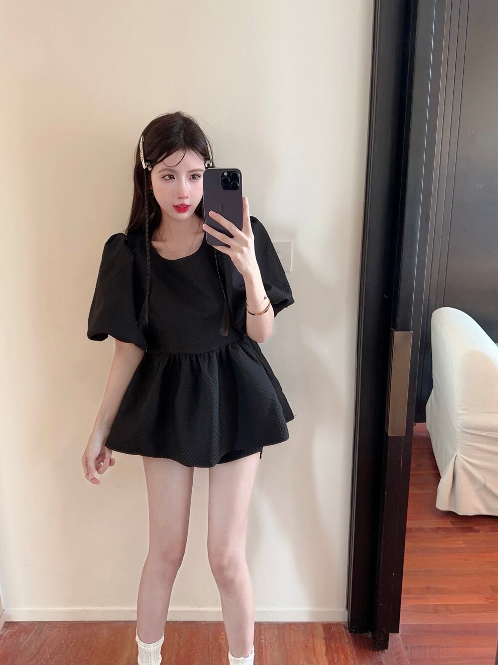 パフスリーブスカート夏新気質小さなシックな甘いウエスト痩身プリンセス風ドレス女性 大人ガーリー スウィート キュート カジュアル サマー 夏物 nana61773163014 | modepoisson