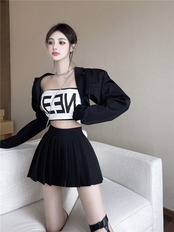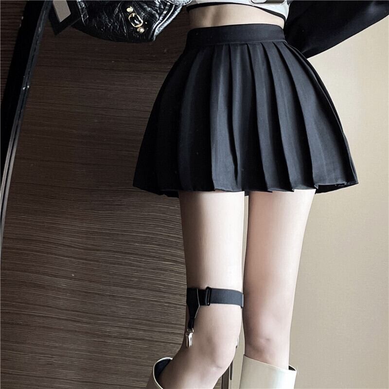 黒のショート スカートの女性の夏 2023年新しいハイ ウエスト小さなアンチ ライト a ライン プリーツ スカート ハイウェスト ブラック サマー 夏物 Aライン nana24001031469 | modepoisson