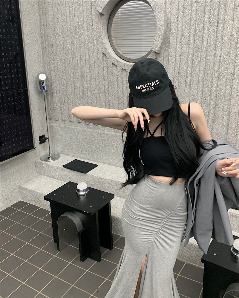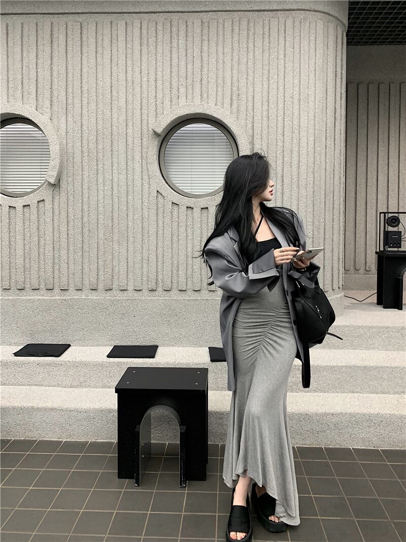 色:黒の内側,グレーコート,マーメイドスカートの2つの着こなし方