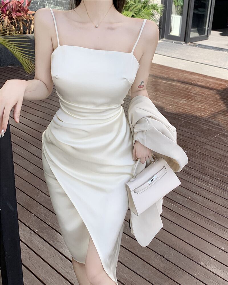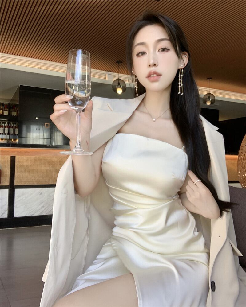 色:アプリコットドレス,ピンクのサスペンダードレス,アプリコットスーツ,白いスーツ