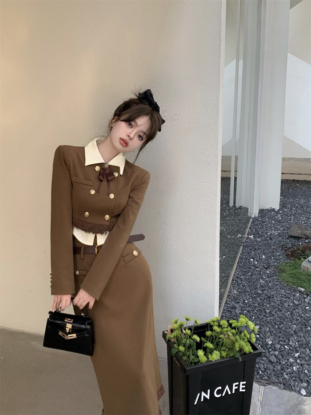 色:コーヒージャケット,コーヒー色のドレス