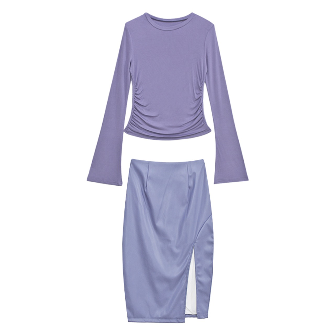 パープルツーピーススーツ 2023 春の新ファッション純粋な欲望スタイルスリムセクシーなトップハーフ丈のレザースカートの婦人服 スプリング 春物 ピュア nana96392683149 | modepoisson