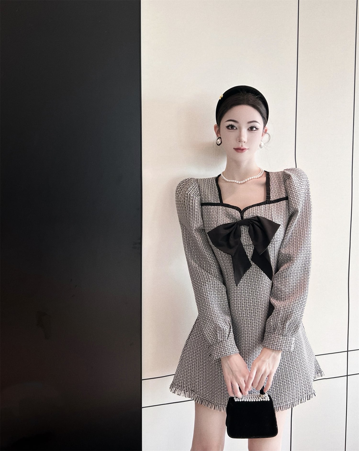 フレンチスタイルの秋と冬のスカート 2022 新気質レディーススモールフレグランススクエアカラースリム長袖ドレス婦人服 ロング オータム 秋物 ウィンター 冬物 スクウェア nana72095535003 | modepoisson