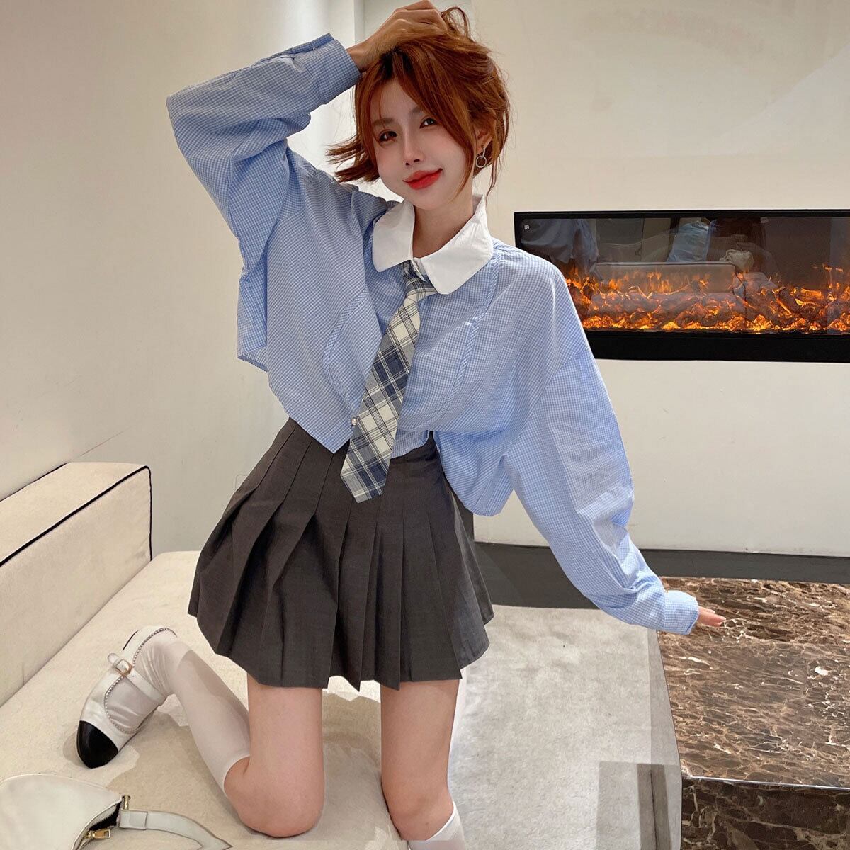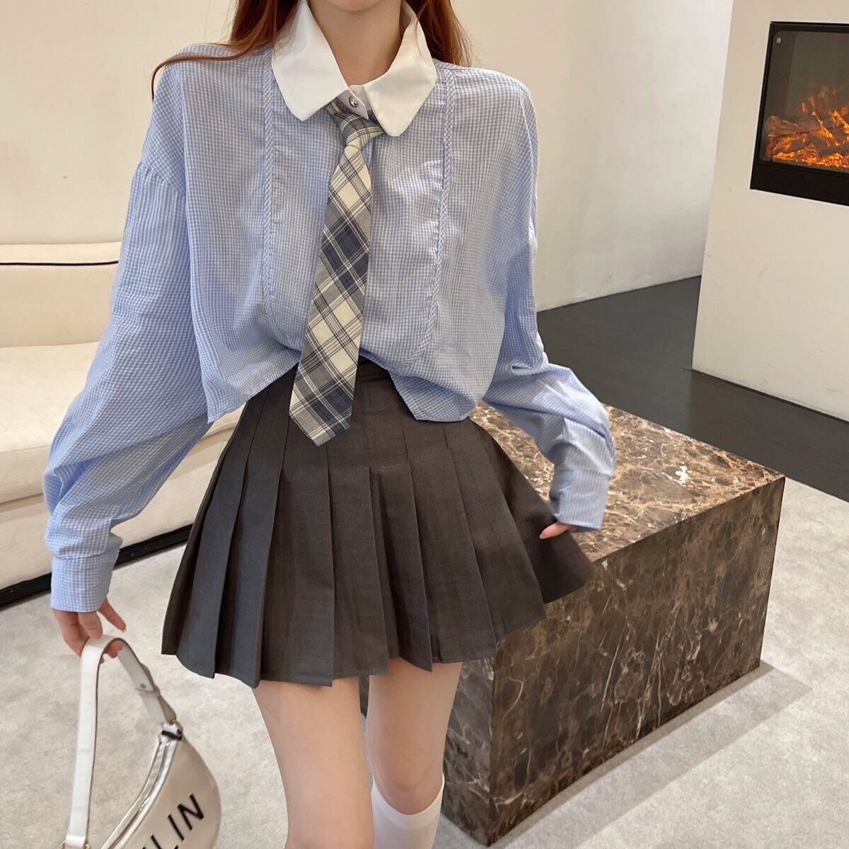 色:青い格子縞の送信ネクタイ,シングルグレースカート