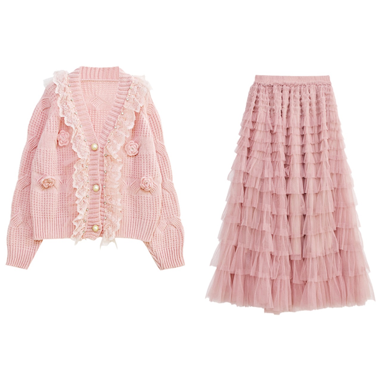色:ピンクのセーター,ピンクのケーキスカート,白いセーター,アプリコットケーキスカート