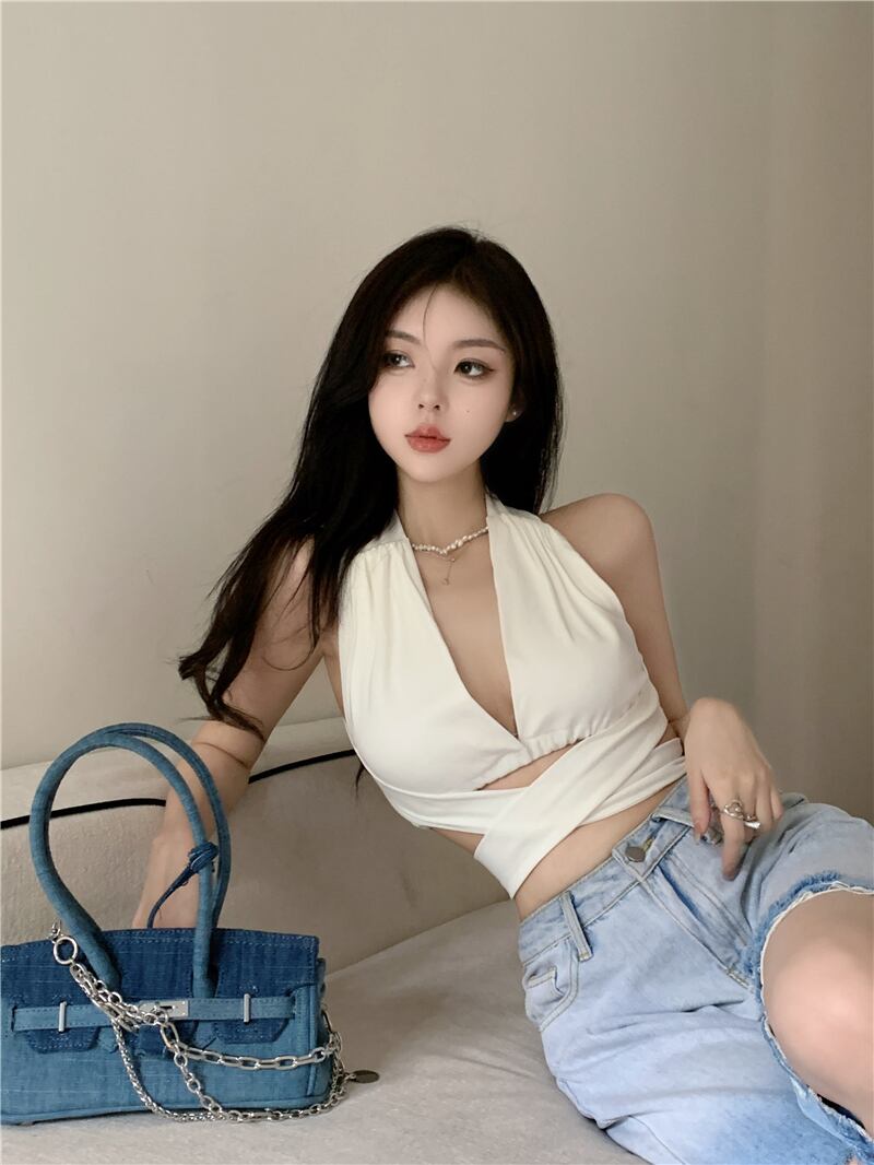 フランスのニッチな甘くてスパイシーなスタイルのショート トップ夏アウター セクシーな中空ストラップ オープン バック デザイン ベスト婦人服 大人ガーリー スウィート キュート カジュアル サマー 夏物 nana3414665589 | modepoisson