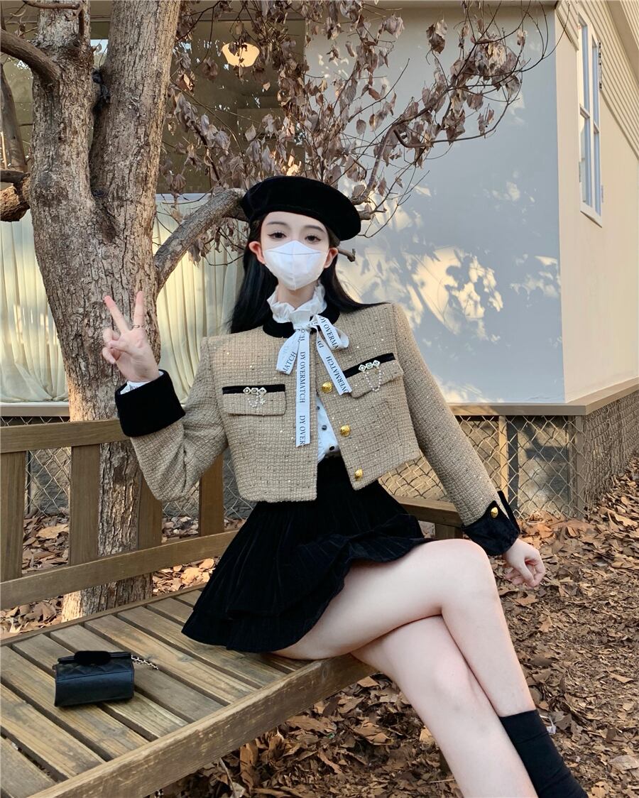 裕福な家の娘シャオシャンスタイルのツーピーススーツ2022年秋冬の気質の有名人のコートの半身丈の短いスカートの婦人服 ショート オータム 秋物 ウィンター 冬物 nana69255357335 | modepoisson