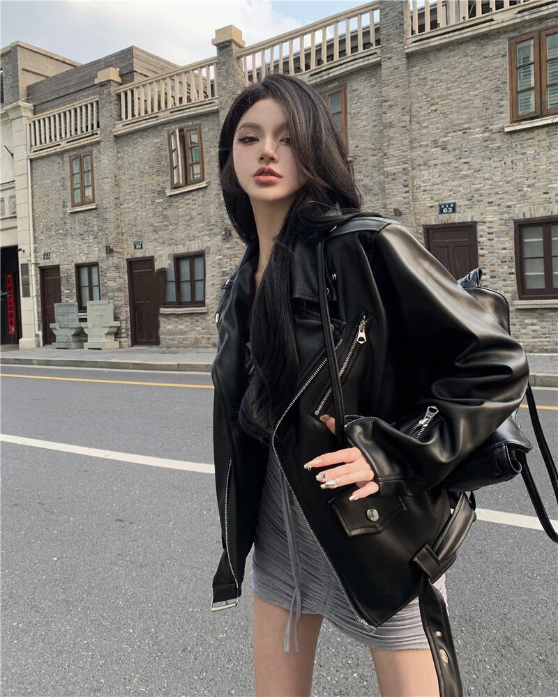 レザー ショート コート レディース 2023年 早春 新作 小さめ ブラック レザージャケット モーターサイクルジャケット スプリング 春物 nana64239045383 | modepoisson