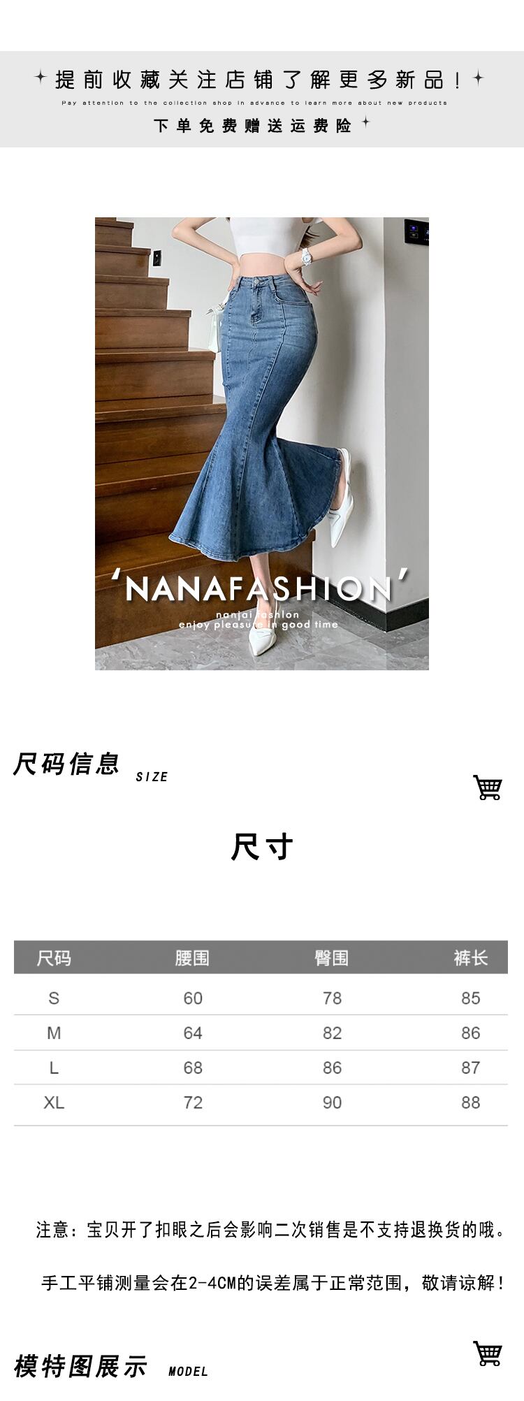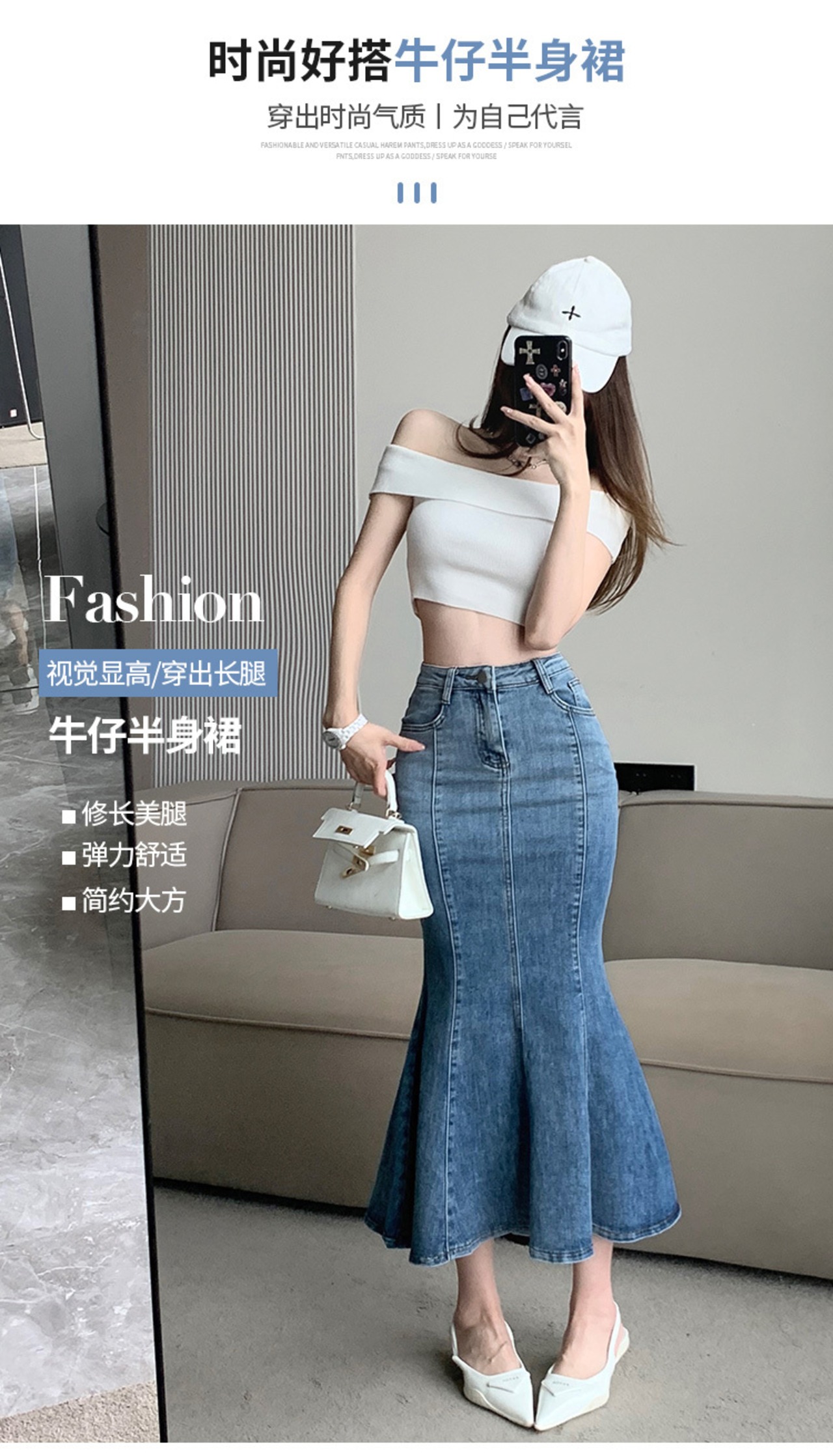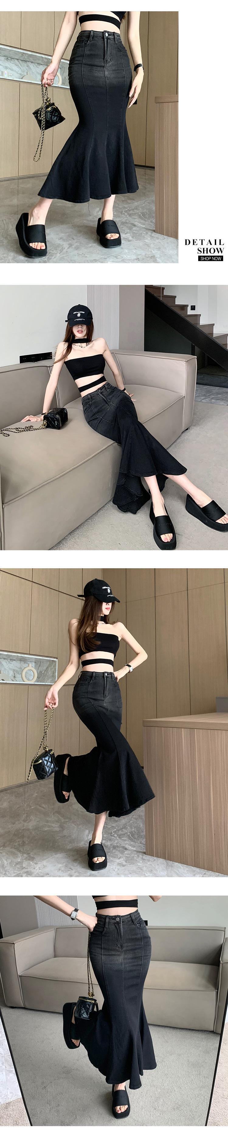 レトロデニムマーメイドスカート 2023 春の新作ハイウエストスリムミドル丈スリットバッグヒップスカート婦人服 ハイウェスト スプリング 春物 nana58061087274 | modepoisson