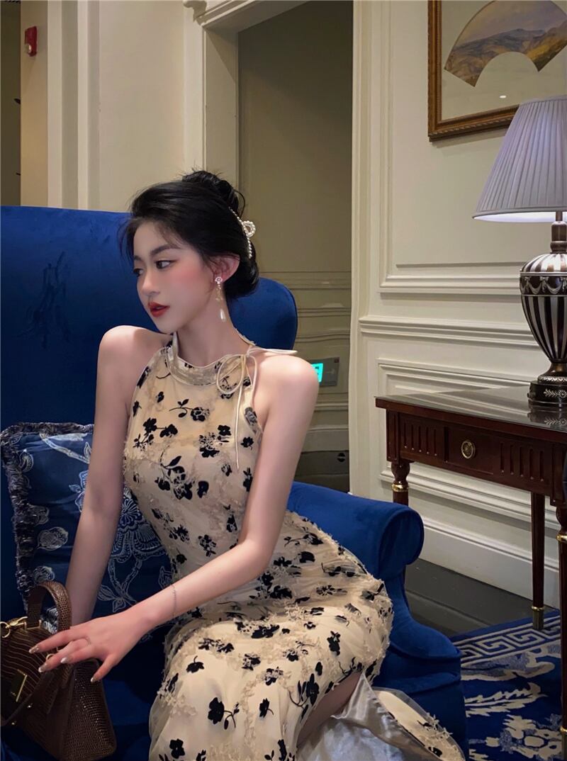 色:立体浮かぶ花チャイナドレス