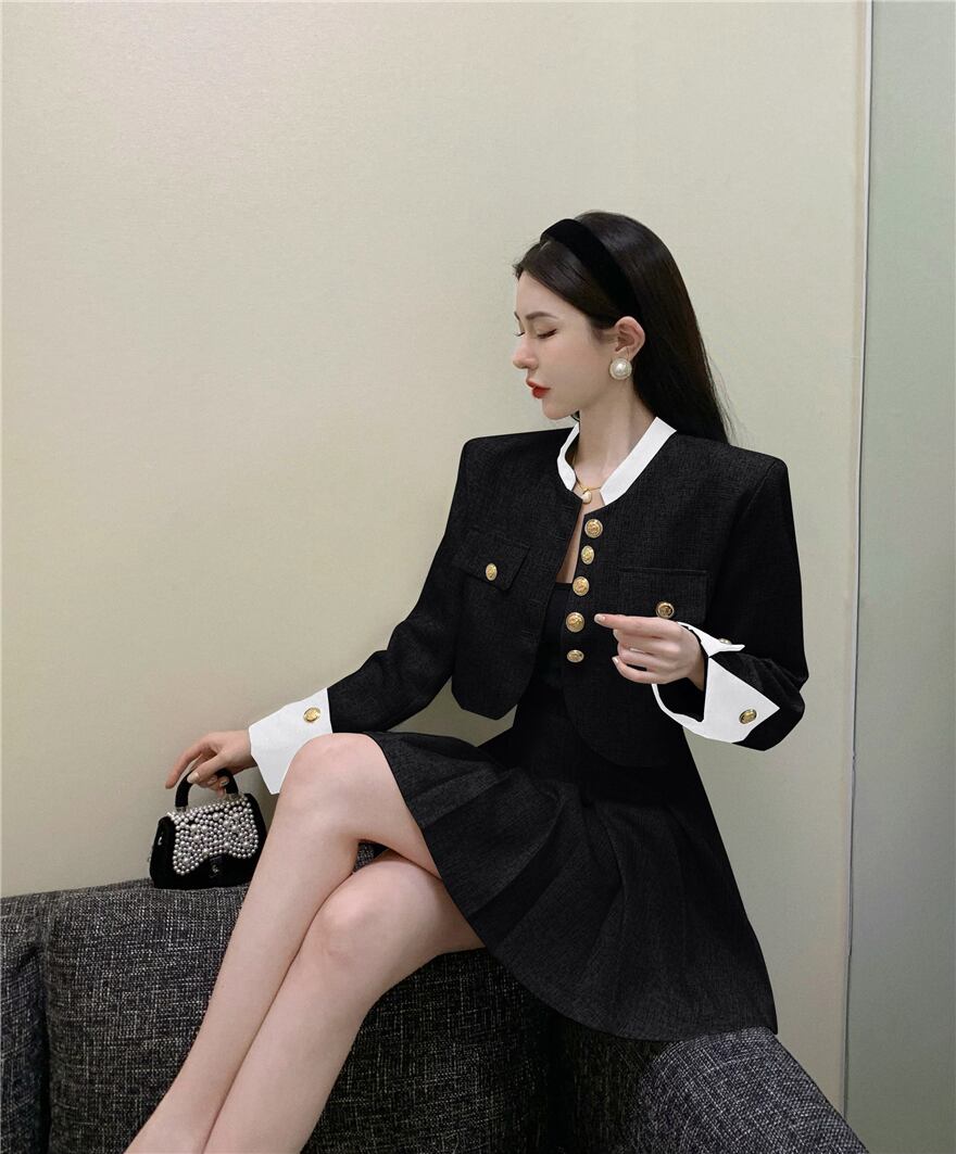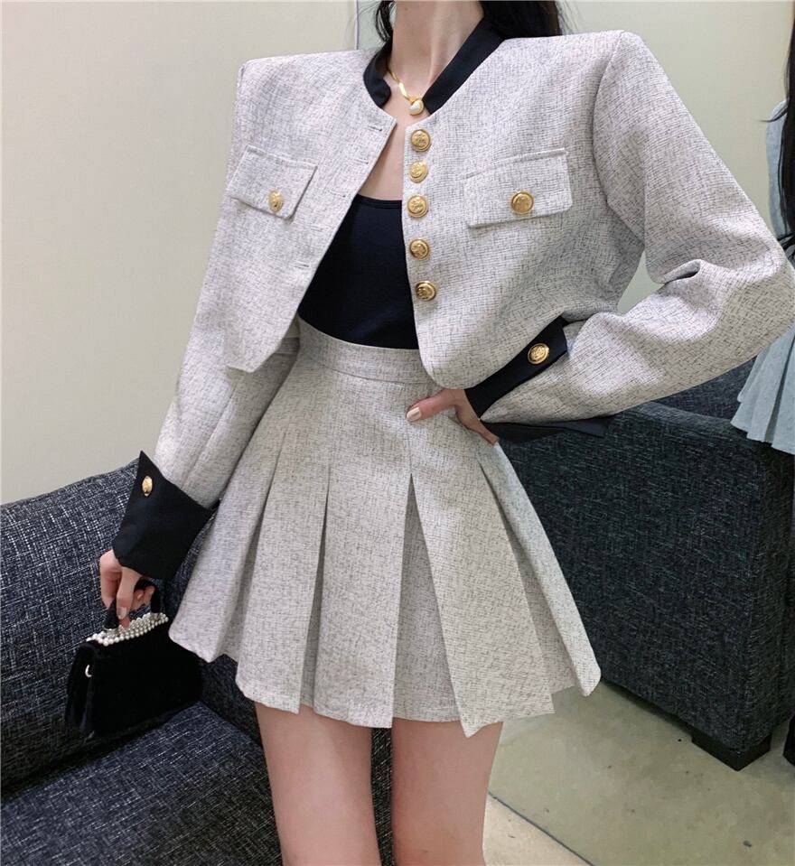 フレンチスタイルの小さなフレグランススタイルの淑女気質のスーツの女性の春のショートコートハイウエストプリーツスカートネットレッド2点セット ハイウェスト スプリング 春物 nana31000552490 | modepoisson