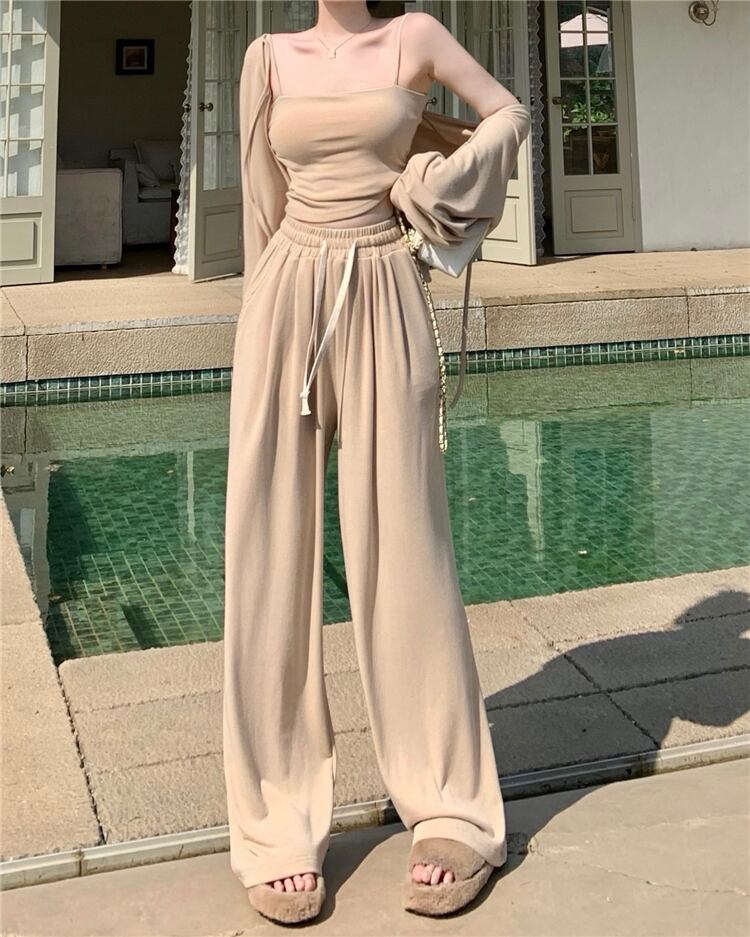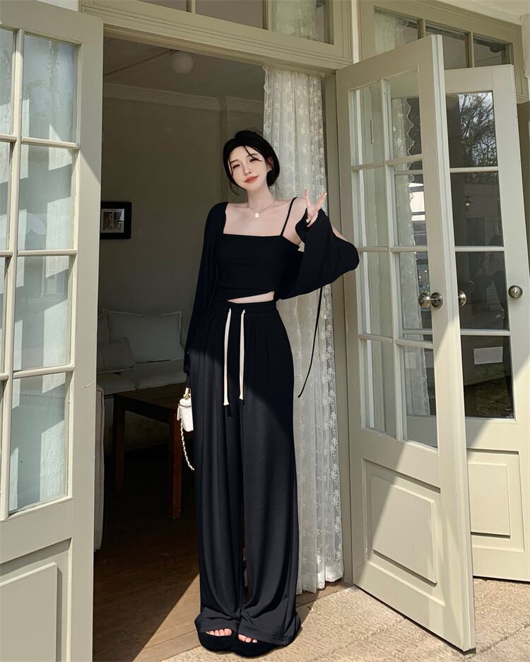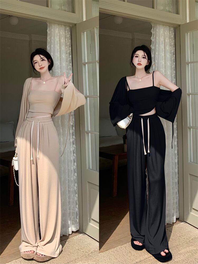 ドラマ着用スリーピーススーツ春 2023 新ファッション気質スリングカーディガントップハイウエストワイドレッグパンツ女性 ハイウェスト スプリング 春物 nana32516828070 | modepoisson