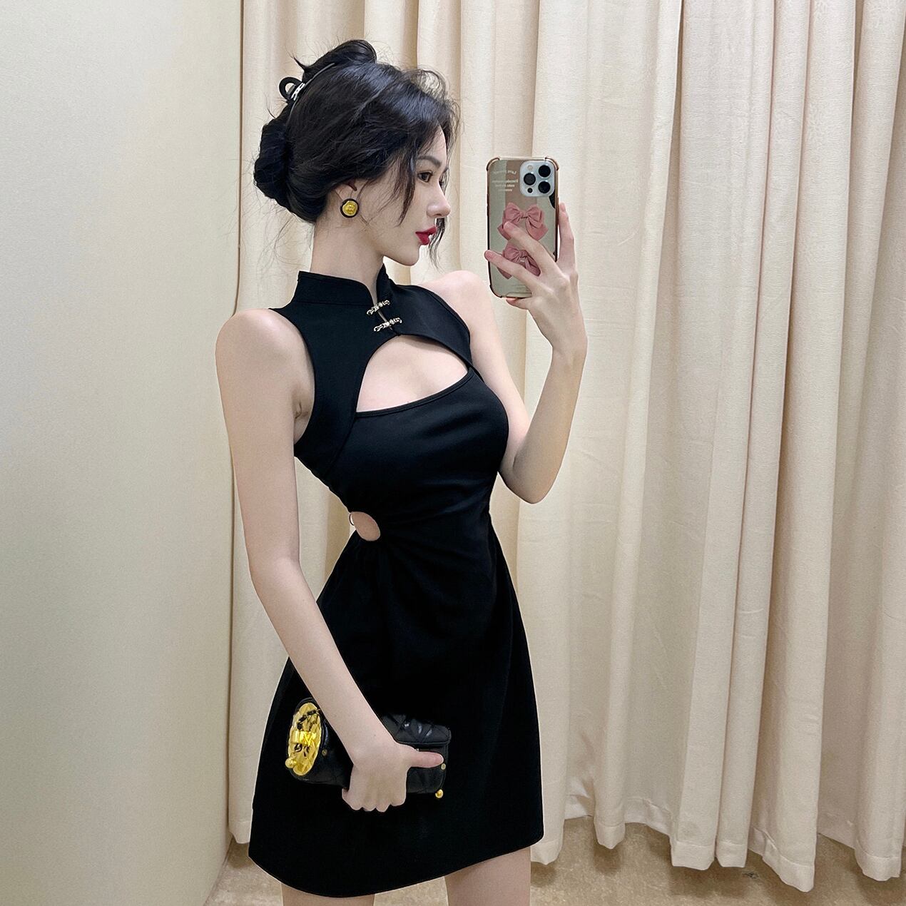 シックで甘くてスパイシーなスカートウエスト2023新しい自己修養フランスの気質の有名人の小さな黒いドレスの婦人服 ブラック 大人ガーリー スウィート キュート カジュアル nana90798316765 | modepoisson