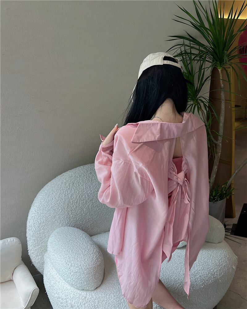 色:ピンクのスカート,黒スカート,ピンクのシャツ,白のシャツ